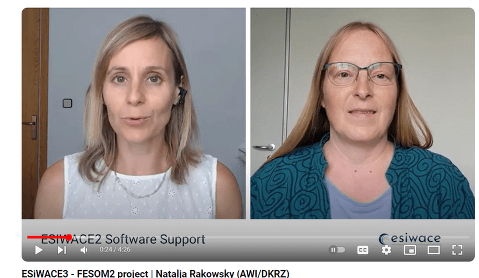 The first testimonial was Natalja Rakowsky (previously at AWI, now at DKRZ) on the service she received from ESiWACE2 experts in the framework of the FESOM2 project. Gijs van der Oord (NLeSC) explained his point of view on the service he provided as an ESiWACE2 expert in the framework of the FESOM2 project.